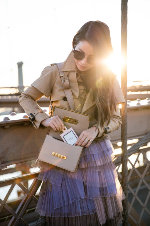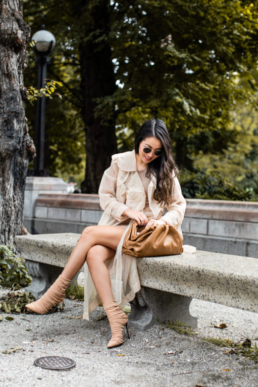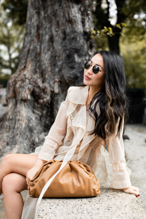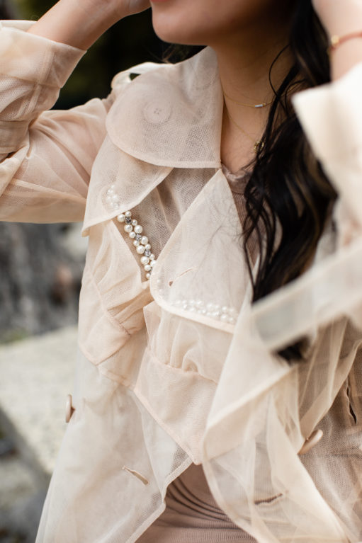 My favorite color palette for spring, summer, and fall. A symphony of cream, beige, and tan all working together to create airy textures and a polished feel. This tulle trench is out of this world and can be layered on top of a traditional trench coat for a high volume look. I also found this Maje tulle coat that can be worn as a dress, as a coat, or over a trench as well to create a layered look. There’s just something so irresistibly gentle, soft, and feminine about tulle. And it’s a great look for day and night.
