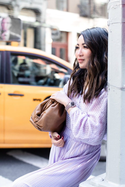 New season, new silhouette, same love for lavender. A fresh take on spring styling with lavender and soft pleats.