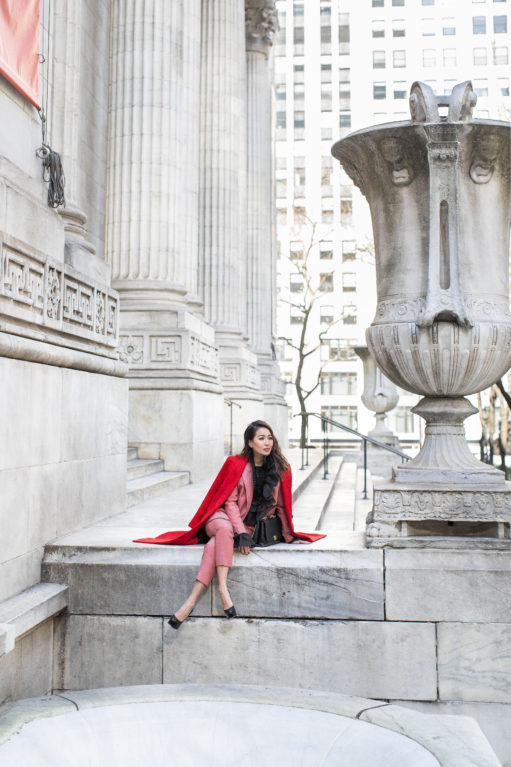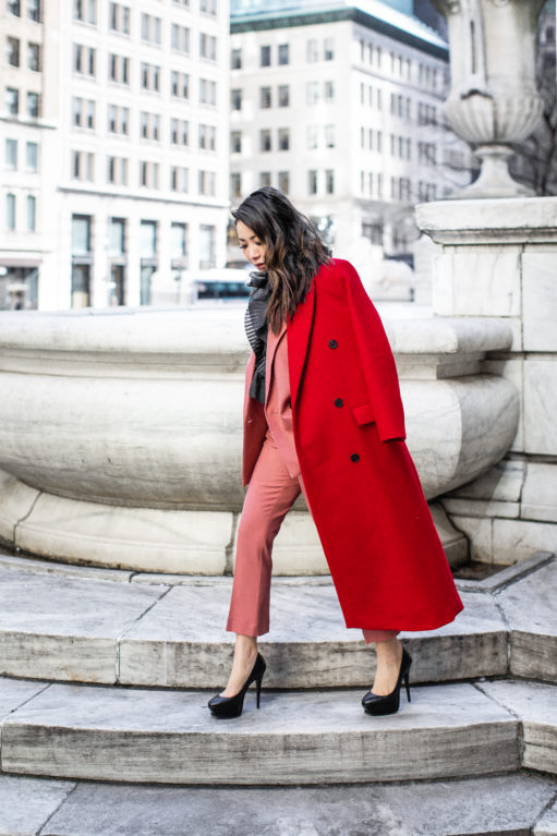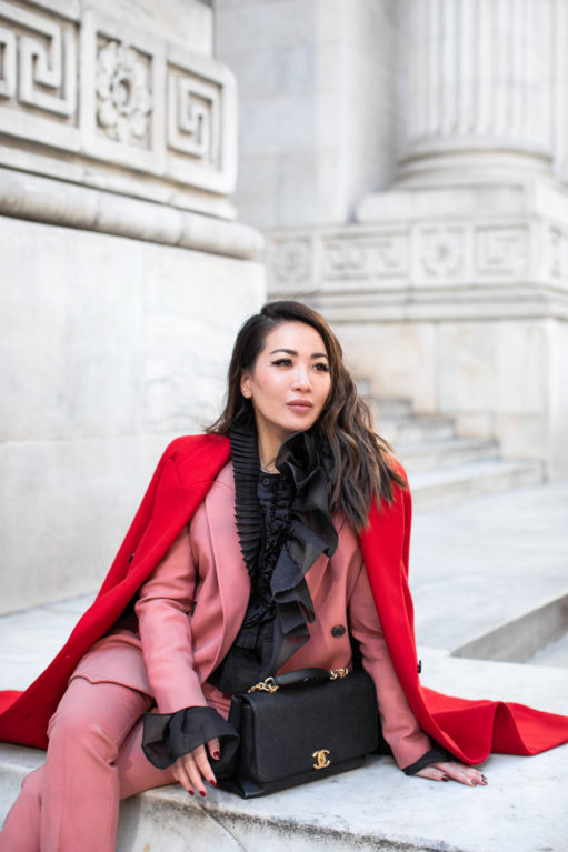 Another reason why I’m so attached to suits is that they act as separates, which opens up different pairings throughout the year. For example, I can restyle this blazer in the summertime with shorts or I can pair these tailored pants with a red chunky sweater for spring. They’re perfect with pumps, kitten heels for more comfort, and sneakers for a casual look.
