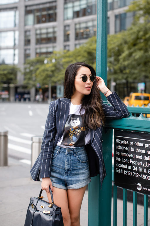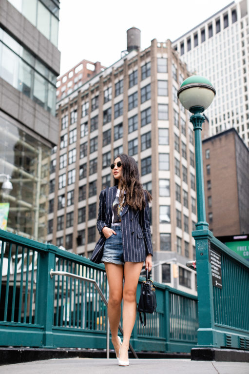 To be honest with you, I can’t pull off the track pants and bermuda shorts look, so I was trilled to see classic pieces in this collection. My favorite piece is this striped boyfriend blazer! It’s such a timeless piece! Great for the office when accompanied with tailored pants, for the weekends when coupled with jeans and sneakers, for the fashion lover to pair with boots, and for the busy soul who doesn’t have much time in the morning but still want to look polish and sleek throughout the day. And not to mention, it’s a great year round piece!